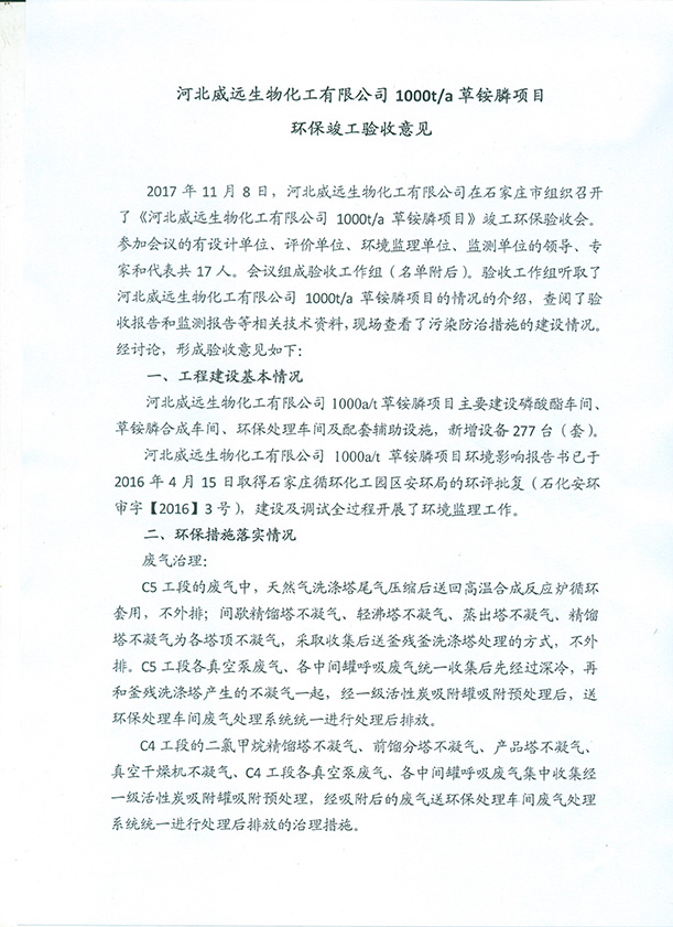 →河北威远生物化工1000t草铵膦环保竣工验收报告
