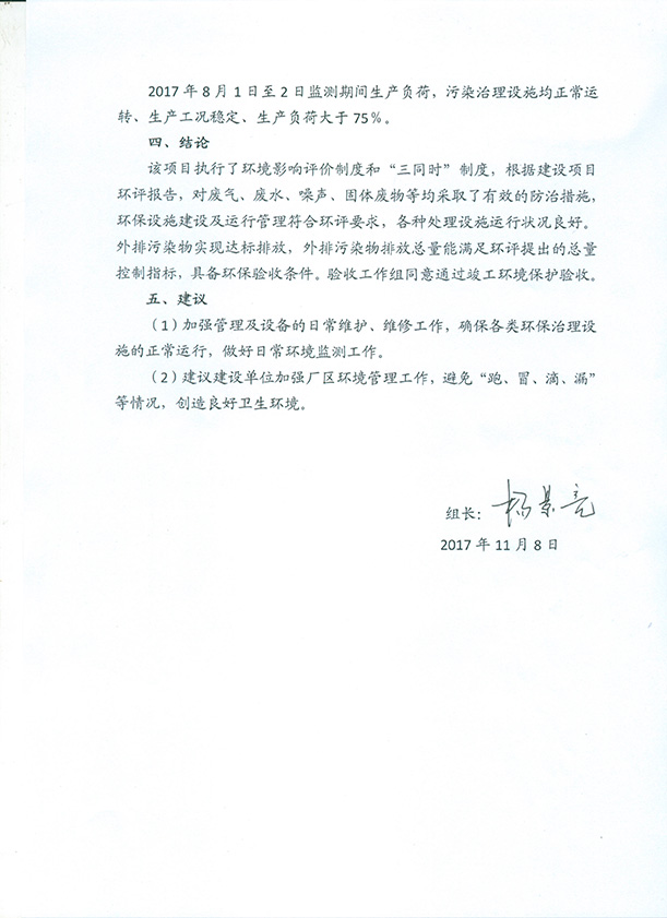 本项目验收报告和验收意见于2017年11月15日在公司外网进行公示,公示期一个月,公众在公示期内如有意见或建议可向我公司或环保管理部门反馈。